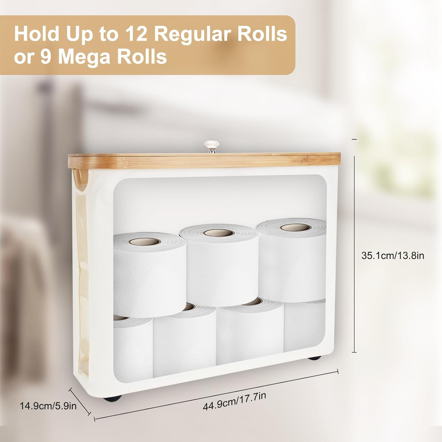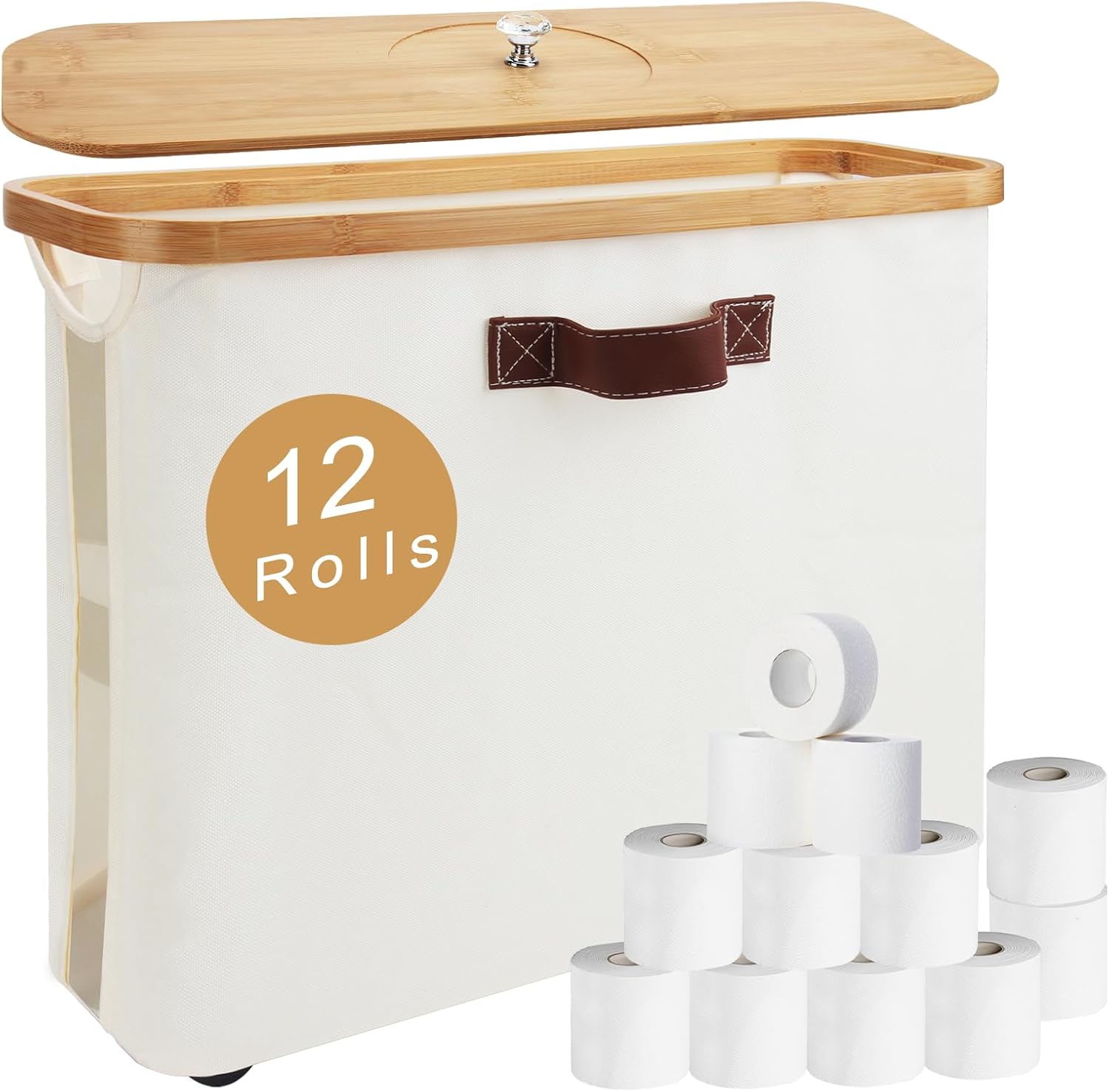 Toilet Paper Storage, ZOUTOG Toilet Paper Storage with Lid, Bathroom Clever Toilet Paper Storage Holder, Free Standing Toilet Paper Basket with Storage, Bathroom Organizer Cabinet Container Accessorie