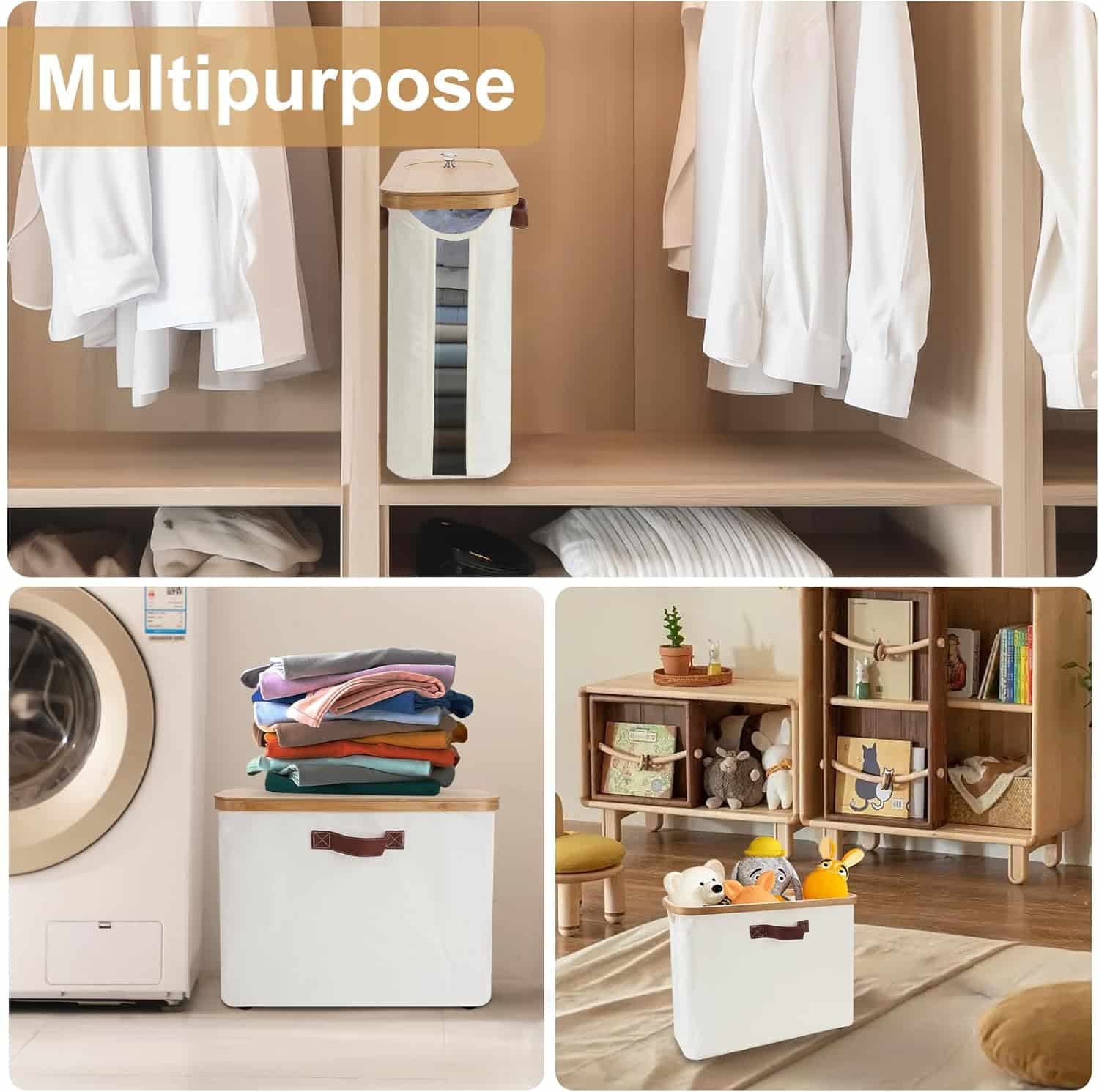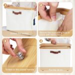 Premium Quality Build: Crafted with a smooth bamboo frame that’s both stylish and durable, paired with waterproof Oxford fabric, this toilet paper storage holder is built to last. The 4 bamboo rods with hook-and-loop fastener keep it sturdy, while the crystal handles and bamboo lid add a touch of elegance.