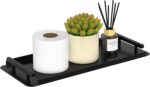Modern and Simple Design: The toilet paper basket with polished black handles will be an elegant accent in your home and can be matched well with most household style, the bathroom tray dimension is 13.78*5.75*1.2 inches, it is perfect for maximizing toilet tank and bathroom counter space