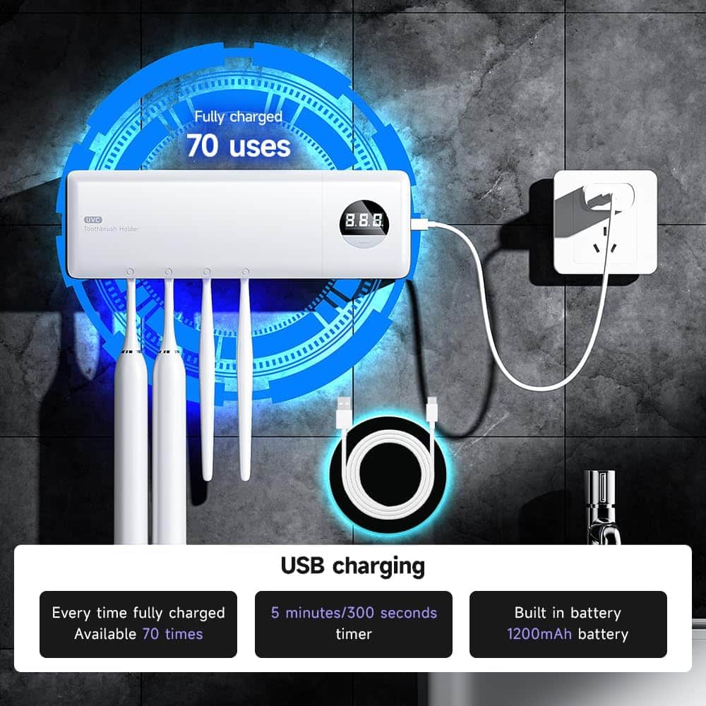 REECHARGEABLE LONG BATTERY LIFE: Our rechargeable toothbrush holder takes the hassle out of frequent recharging. Each charge lasts up to 70 uses, ensuring that the holder is always ready to provide a clean and sanitary space for your toothbrush.