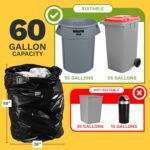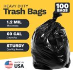 ToughBag 55 Gallon Trash Bags Heavy Duty (100 Count) – 50-60 Gallon Black Garbage Bags, Large Trash Bags – 38 x 58″ – Made in USA