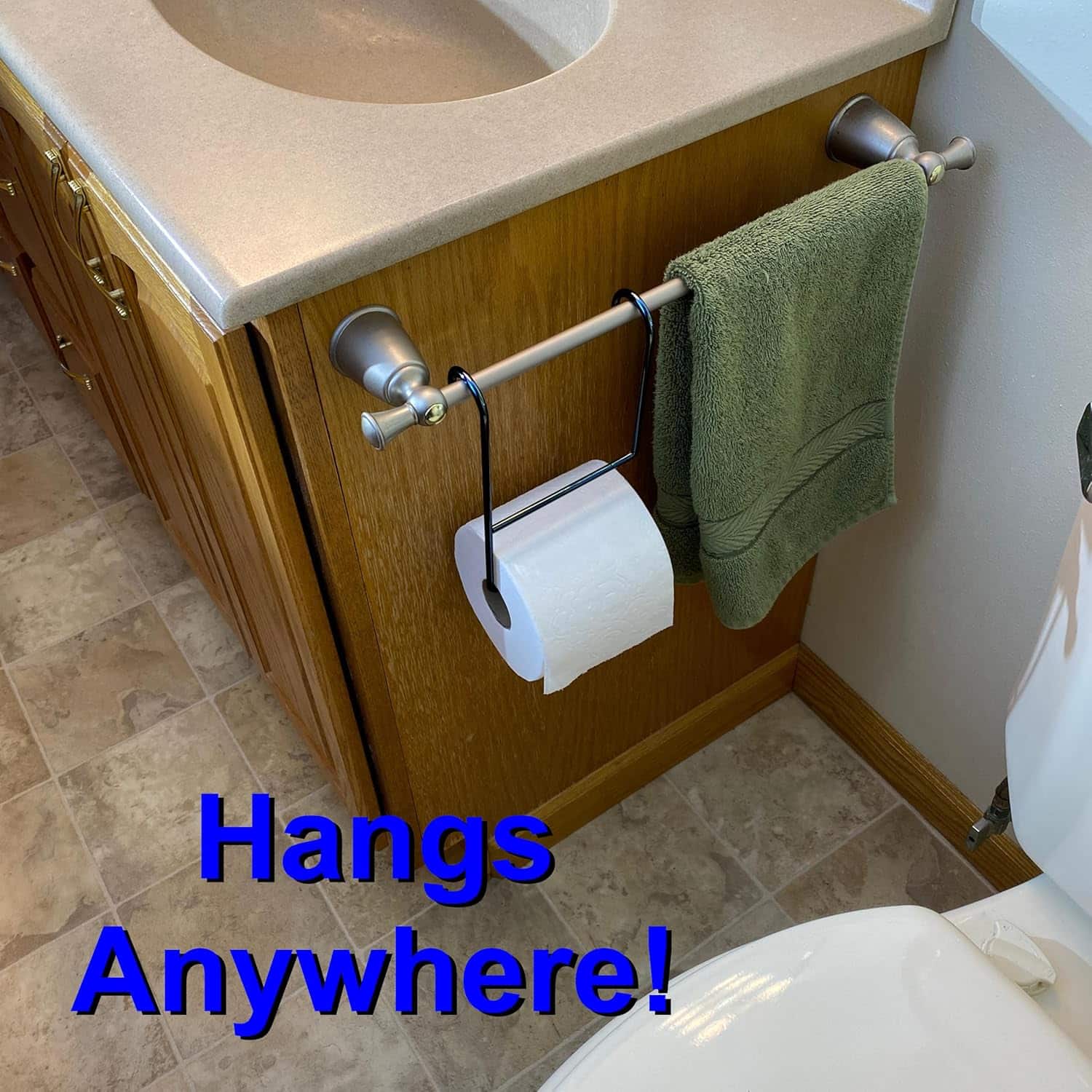 ACCOMMODATES ALL SIZES: The smart design holds toilet paper rolls of all sizes: standard, jumbo, and mega sizes. Hanger works with all existing hardware styles and toilet paper roll sizes. Will not fit over an ADA grab bar.
