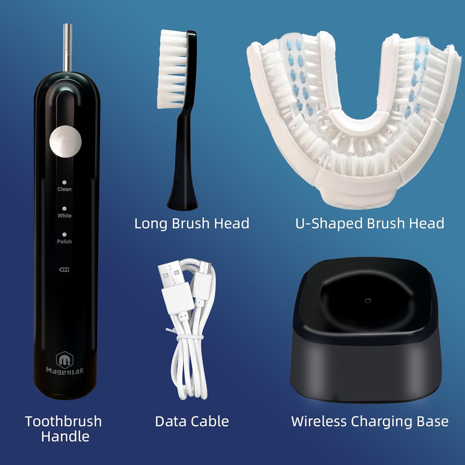U Shaped Toothbrush for Adults, Electric Toothbrush for 360-degree Cleaning, Ultrasonic Toothbrush with Wireless Charging, Waterproof IPX7,3 Modes for Teeth Whitening