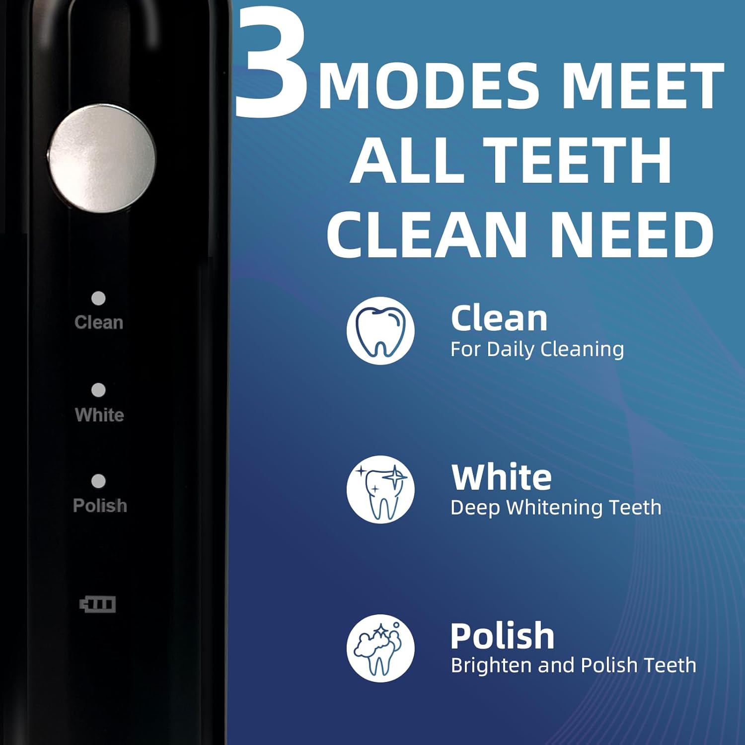 Three Modes: The automatic toothbrush has three working modes: standard, gentle, and deep clean. The electric toothbrush for adults adopts the way of clicking the button to switch the working mode, and the vibration frequency of the toothbrush can reach 20,000-40,000 times in one minute