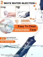 ❤🦷【🔋1500mAh Powerful battery & 👍Long Battery Life – 4 hours charging can be used 70 days! 】【💦300ML Big capacity & IPX7 Waterproof – It can use for shower in the bathroom】With the upgraded detachable wide mouth water tank, users can completely clean the water fouling in the tank