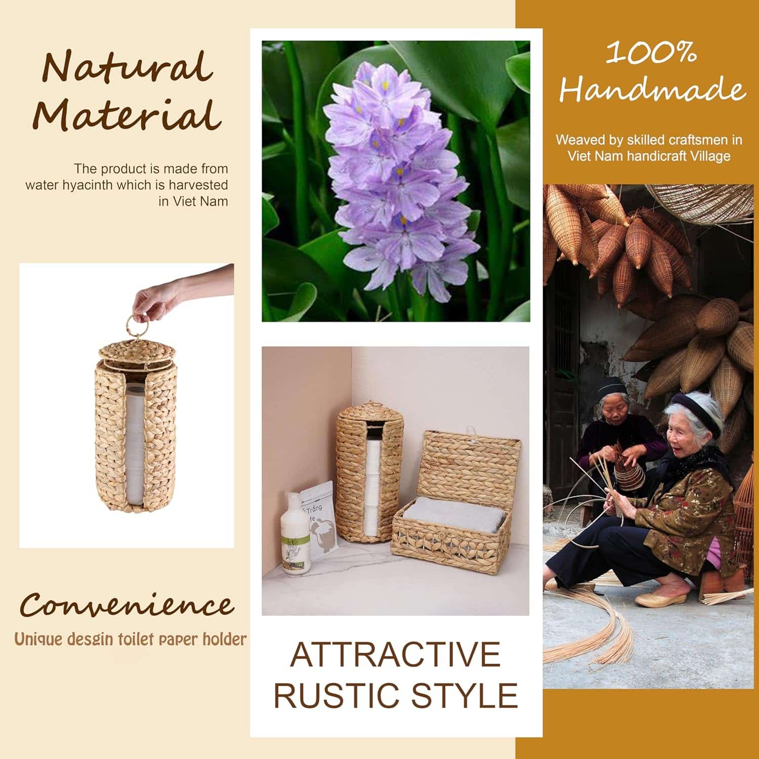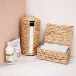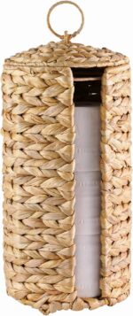 ☘️ 【STORAGE】: Holds up to 3 rolls of toilet paper, natural water hyacinth toilet paper holder external size: 7″ L x 7″ W x 15″ H & internal size: 5 ¾” L x 5 ¾” W x 13 ¾” H, please take measurements of your toilet paper basket correctly before purchasing.