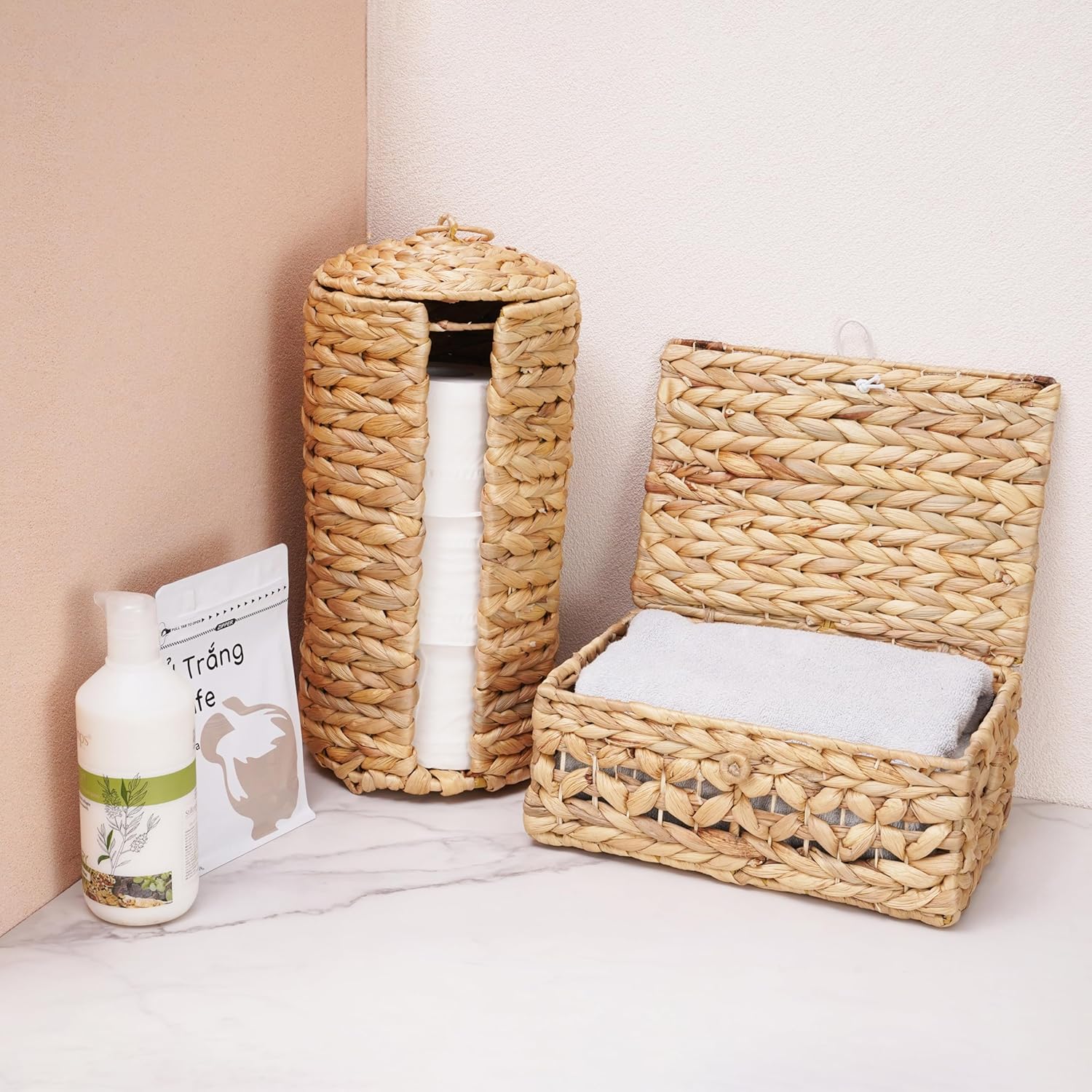 ☘️【PREMIUM RATTAN QUALITY】: Manufactured using only top-quality wicker materials, with a durable water hyacinth construction, this toilet roll reserve will last for years to come.