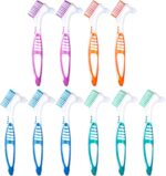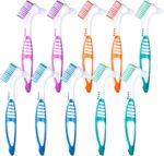 WLLHYF 10 Pcs Denture Brush for False Teeth Denture Care Cleaning Brush Double Sided Toothbrush Portable Soft Multi-Layered Bristles Cleaner Brush Ergonomic Rubber Handle