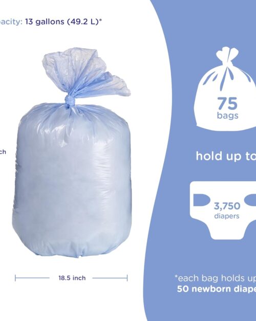 Ubbi Diaper Pail Plastic Bags, Disposable Baby Waste Bags, 3 Pack, 75 Count, 13-Gallon Bags
