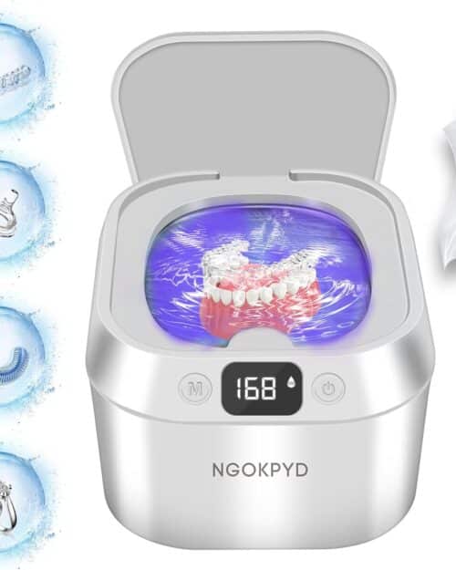 Ultrasonic Retainer Cleaner, Sonic Dental Cleaning U-V Machine for Dentures, Mouth Guard, Aligner, Toothbrush Head, Jewelry, All Dental Appliances, Portable 30W/45kHz (White)