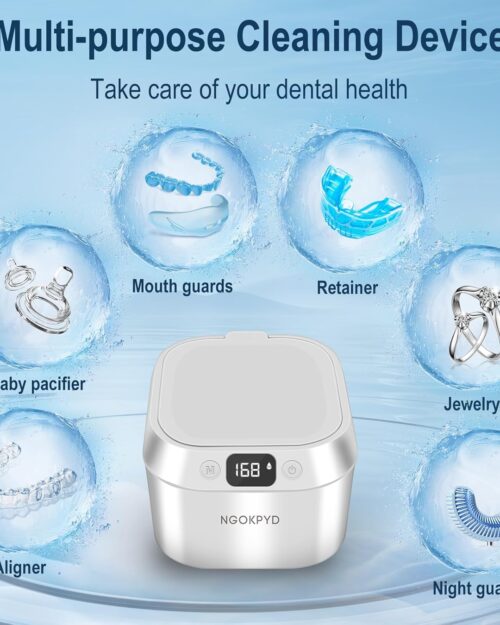 Ultrasonic Retainer Cleaner, Retainer Cleaner Machine for Dentures, Mouth Guards, Braces, Toothbrush Heads, Jewelry with 200ML Capacity, 45kHz Retainer Cleaning, 4 Modes for All Dental Appliances