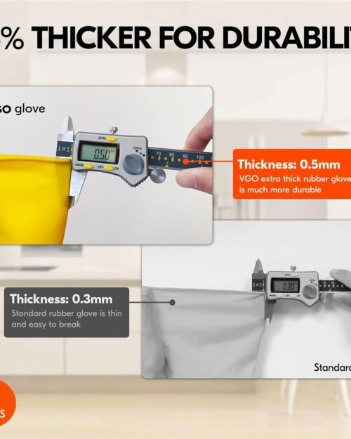 Vgo… 3-Pairs Reusable Household Gloves, Rubber Dishwashing gloves, Extra Thickness, Long Sleeves, Kitchen Cleaning, Working, Painting, Gardening, Pet Care (Size M, Yellow, HH4601)