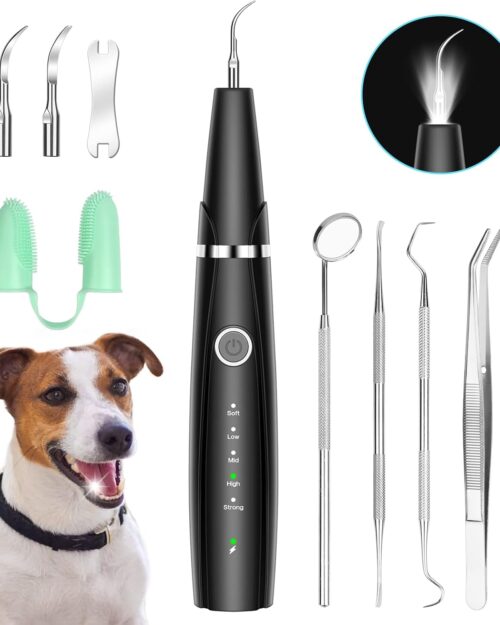 Ultrasonic Dog Teeth Cleaning Kit for Pet Teeth Cleaning, Dog Plaque Remover for Teeth, 5 Modes Dog Tartar Remover for Teeth Care to Remove Stains Calculus, 10 in 1 Pet Cleaner Toothbrush (Black)