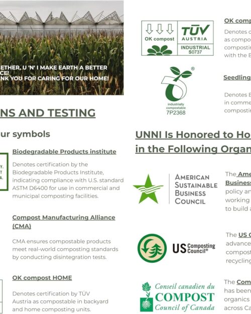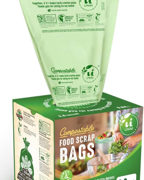 UNNI Compostable Liner Bags, 2.6 Gallon, 9.84 Liter, Extra Thick 0.71 Mil, 100 Count, Small Kitchen Food Scrap Waste Bags, ASTM D6400, US BPI, CMA and Europe OK compost HOME Certified, San Francisco